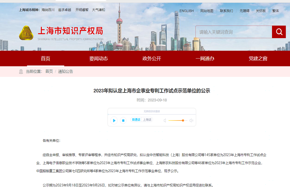 上海市知识产权局近期公布了2023年拟认定上海市企事业专利工作试点示范单位名单并于9月26日结束公示,上海瑞浦青创新能源有限公司喜获试点单位认定。该认定经浦东新区知识产权局初审推荐、专家评审、市局会议研究、网上公示等程序,综合考察申请单位知识产权管理水平、知识产权创造质量、运用效益和保护水平。本次认定是继2023年获得第24届中国专利优秀奖后,瑞浦青创知识产权工作的又一成果体现,是知识产权主管部门对瑞浦青创知识产权工作建设和成效的肯定,将激励全体员工持续加强知识产权体系建设,强化知识产权工作,提升企业核心竞争力。