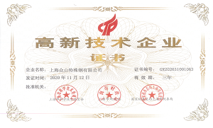 众山特钢获国家高新技术企业认证